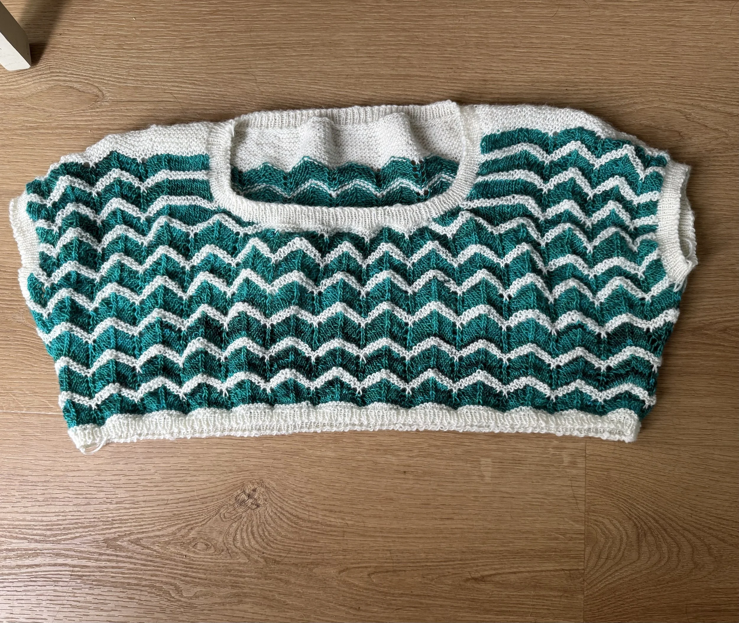And this is a good time to mention the big one: for plant fibers/100% silk, it may be good to pick up fewer sts around the neckline. Since these types of fibers have less give, the ribbing will also have less give and possibly end up stretched out. An animal fiber will relax down and tighten up the neckline as written, but that looser neckline seen in the all black one above is from the 100% plant fiber content of the yarn. This tester is going to redo their neckline with fewer sts to adjust for this. And it was a great note for me, as I rarely use plant fibers (my hands don’t typically like them), so this didn’t occur to me!